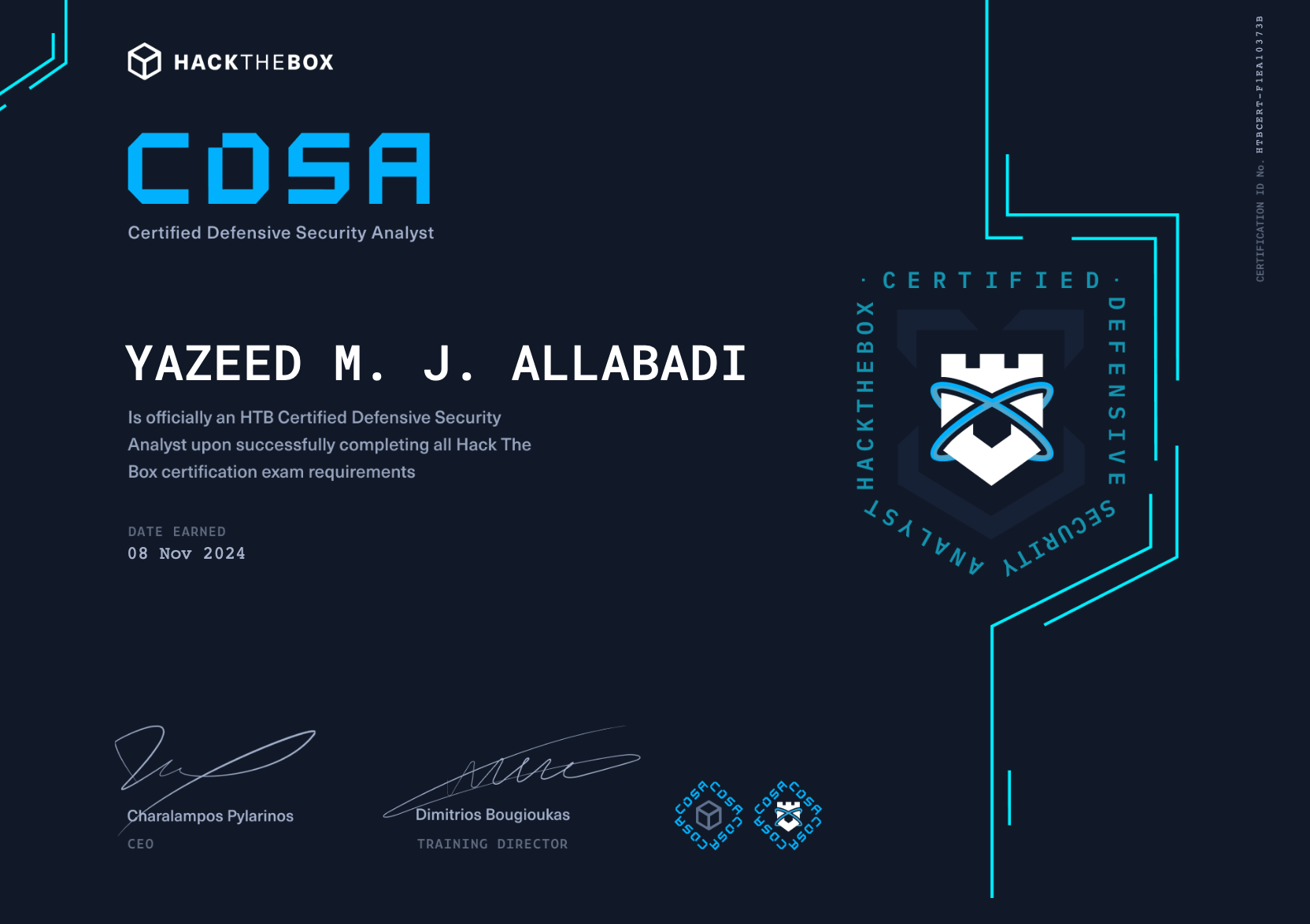 HTB CDSA is one of the most comprehensive certifications targeted towards beginner and even intermediate SOC analysts. Passing the certification proves the candidates ability in conducting a rigerous security incident investigation using tools like SIEM and using Digital Forensics. According to the official HTB CDSA exam page, this certification is targeted towards :